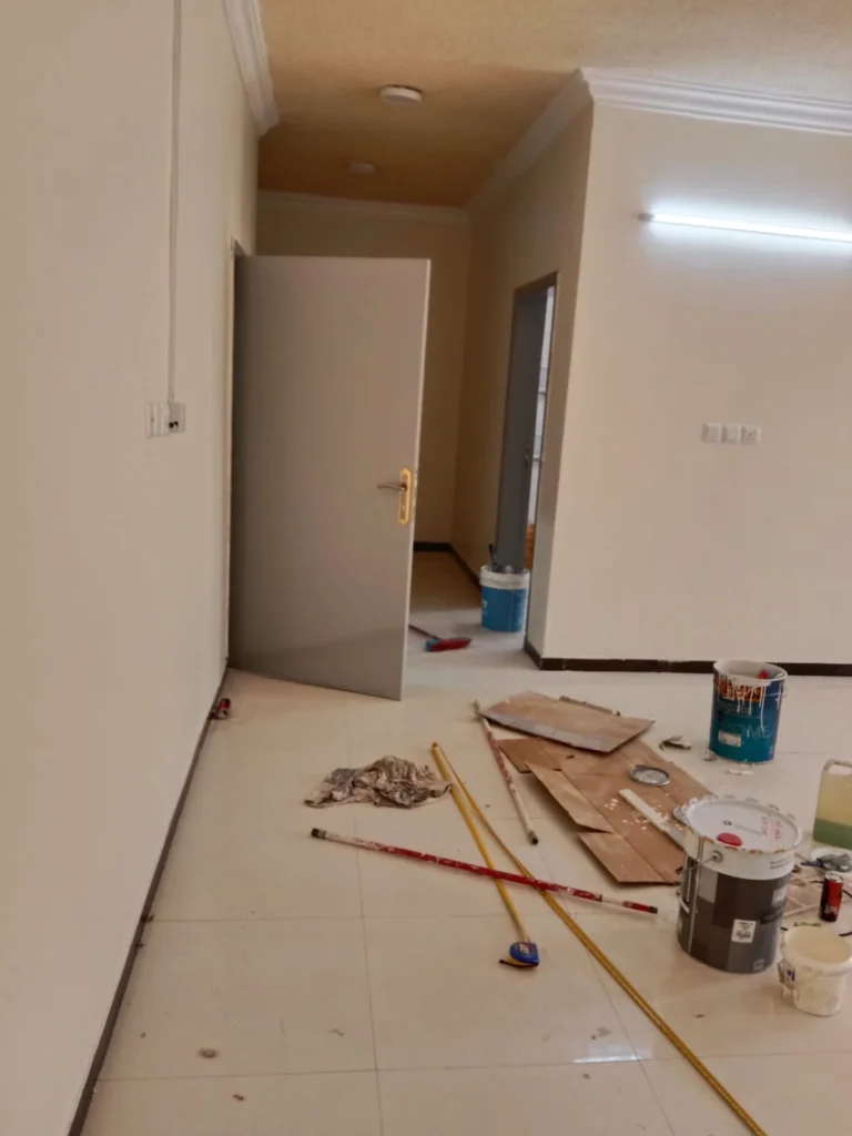 - دهان الأبواب الخشبية والحديدية بجودة عالية وتناسق مع ألوان الجدران.