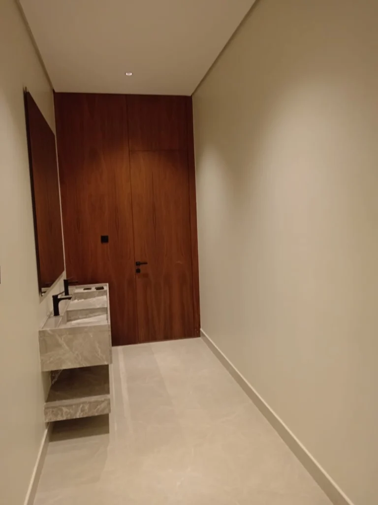 - دهان الأبواب الخشبية والحديدية بجودة عالية وتناسق مع ألوان الجدران.